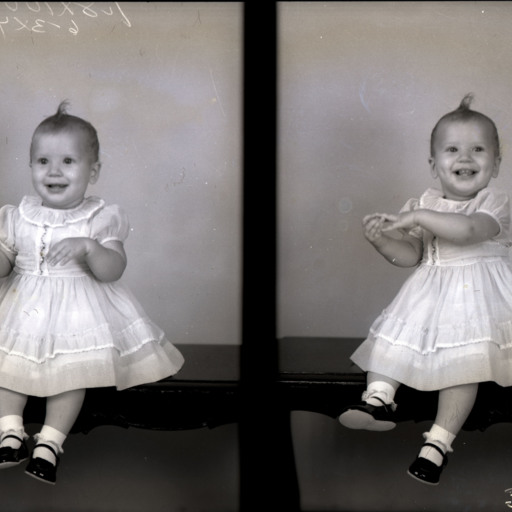 The image on the left has a mark at the top where the photographer noted which of the two images he planned to print.
